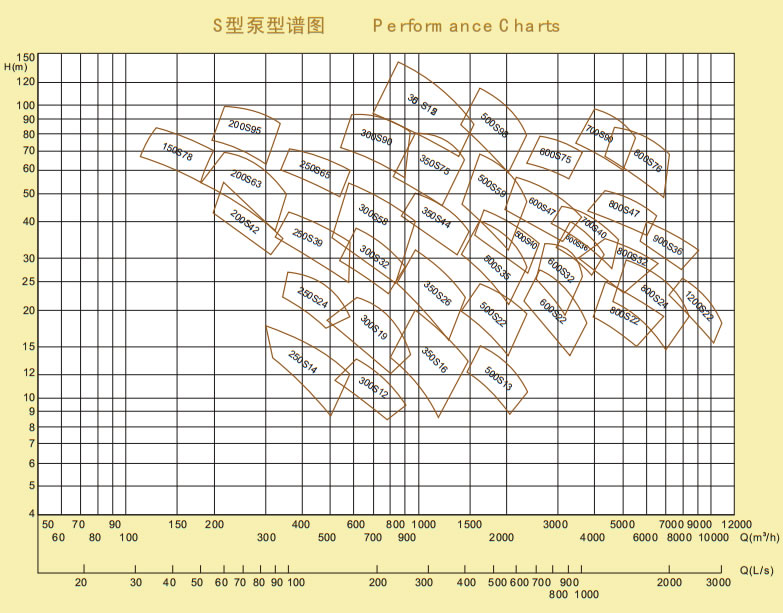 S型水平中开离心式单级双吸泵参数范围: